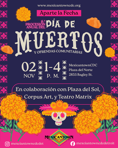Join us for the 6th Annual Día de Muertos Procession and Community Ofrendas — a heartfelt celebration honoring our ancestors through art, culture, and tradition.